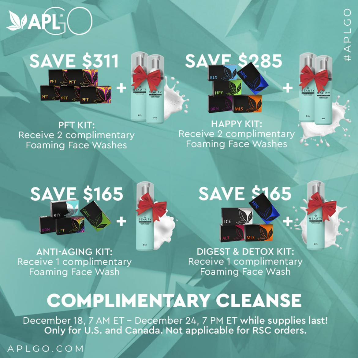 - Anti Aging Kit: Receive 1 complimentary Foaming Face Wash (SAVE $165)