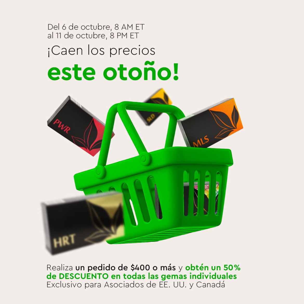 Los Asociados pueden realizar un pedido de $400 USD o más en cajas individuales de gemas, y al finalizar la compra, el sistema aplicará automáticamente un 50% de descuento, por lo que el pago final será de solo $200 USD.
